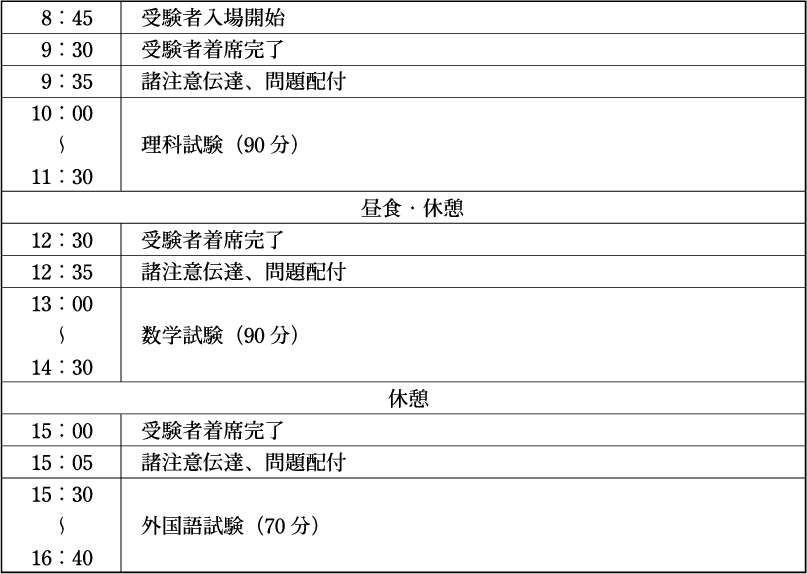 ●入場開始時刻から受験票に印字された試験場に入場を開始し、着席完了時刻までに指定された試験室の座席に着いてください(受験票に印字された試験場、日程以外では受験できません。)。