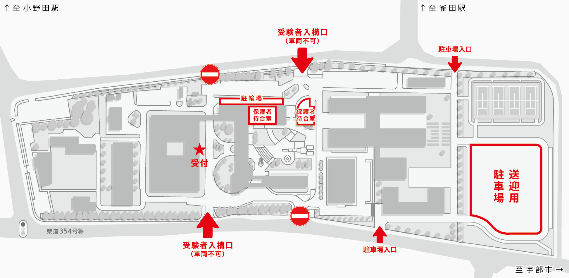 ●駐車場を除き、構内への送迎車、バイク等の乗り入れは禁止します(受験上の配慮として許可された場合を除く。)。
