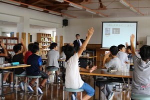 個体から気体になると体積が750倍になることを利用した実験を、異なる状況下で2回行いました。1回目の実験では密閉された状況により、容器のフタが勢いよく飛び、児童たちからは驚きの声があがりました。2回目の実験では、ほぼ同じ状況であるのにも関わらずフタは飛びませんでした。石川教授から「科学では、なぜだろう、と考えることが大事。みなさんには色んな知識を増やしてほしい。」と児童たちに言葉がかけられました。本日の体験を通じて理科に興味を持ってくれる児童が一人でも増えることを期待します。