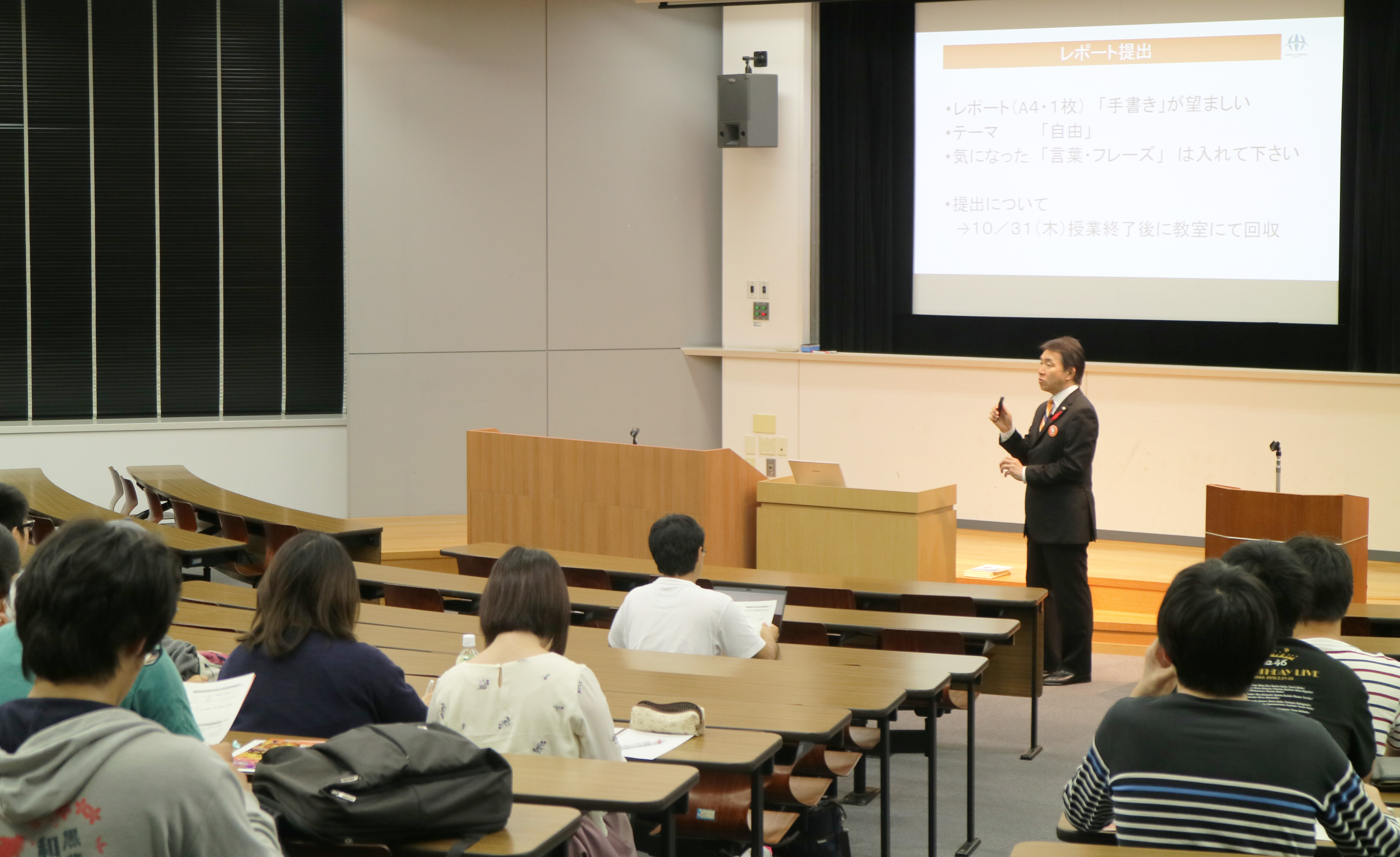 令和元年10月3日(木)、社会に巣立つ上で必要なリーダー資質を養い、将来像の構築や自身のキャリア開発にもつなげることを目的とした講義「リーダーシップ論」にて藤田剛二山陽小野田市長にご講演いただきました。