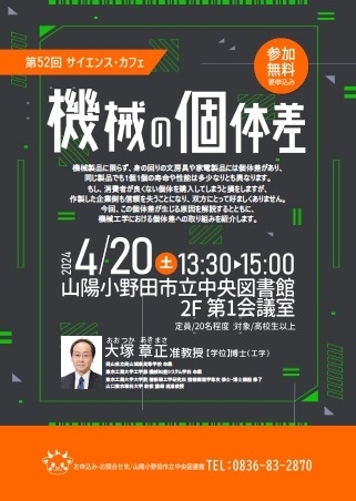 2024年4月20日(土)、山陽小野田市立中央図書館において、第52回サイエンス・カフェが開催されます。