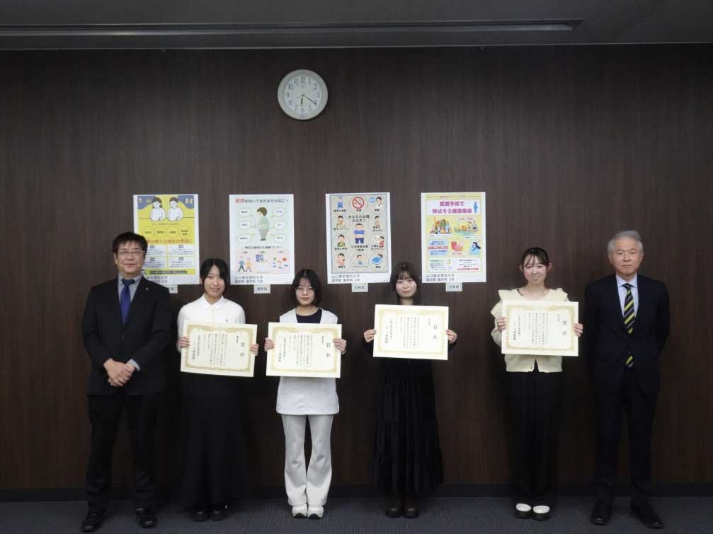 今後、学生が制作したポスターは、市内の薬局に順次掲示され、「肥満」に関する正しい知識や予防・改善方法の啓発に活用されます。山陽小野田薬剤師会と本学は、地域の健康・医療・福祉の向上に向けて、今後も連携して取り組んでまいります。