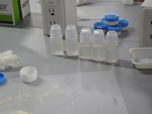 ・作ったカプセル剤を、水の入ったボトルに投入。