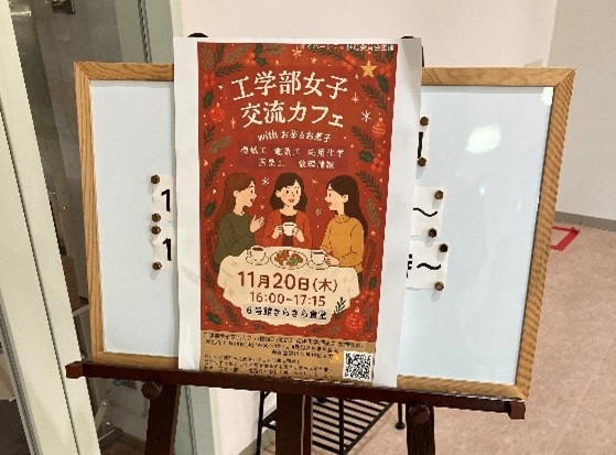 11月20日(木)、本学きらきら食堂にて工学女子交流カフェを開催いたしました。この交流会は、工学部と工学研究科に在籍する女子学生が親睦を深めるとともに、女性教員に大学生活やキャリアパスなどを気軽に相談できる機会として、令和6年度より実施しています。