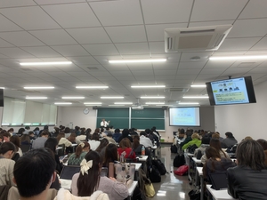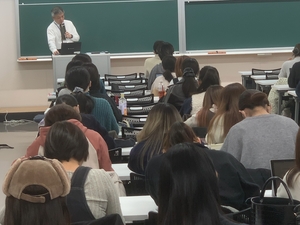 令和7年12月23日(火)、本学を会場として山口県GMPカレッジを開催し、薬学部3年生を対象に外部講師による講演を行いました。 山口県GMPカレッジとは、山口県、山口県製薬工業協会及び本学の産学公連携による医薬品製造所の人材確保等の支援及びGMP人材育成プログラムの作成・実施を目的とした本学薬学部・工学部の学生等向けの事業です。