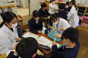 また、おくすり教室後には給食をいただき、お昼休みにはおくすり教室で一緒に勉強した児童とドッジボールやおにごっこなどをして遊び、本教室を通じて地域小学校と良い交流を持つことができました。