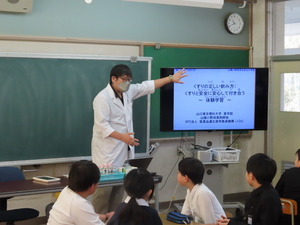令和8年2月2日から3日において、山陽小野田市内の2つの小学校で『くすりの正しい飲み方:くすりと安全に安心して付き合う~体験学習~』(おくすり教室)を開催しました。「くすり」を安全に安心して使っていくために大事なことを学んでいきます。