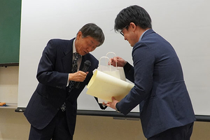 表彰式では、学長から表彰状及び副賞が授与され、受賞した教員から研究活動への取組や今後の抱負が述べられました。