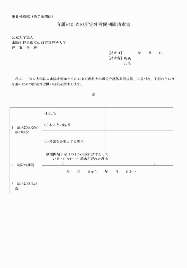 ○公立大学法人山陽小野田市立山口東京理科大学職員介護休業等規程