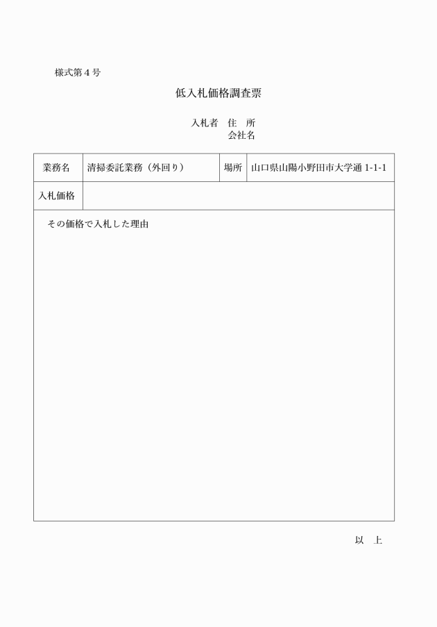 ○公立大学法人山陽小野田市立山口東京理科大学業務委託における最低制限価格及び低入札価格調査実施に関する取扱要領